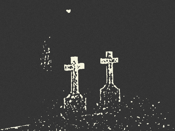 For a second there, I thought I saw a ragged, jerking shape, crawling between the tombstones towards us. A glimpse of a tattered shroud blackened with grave water.