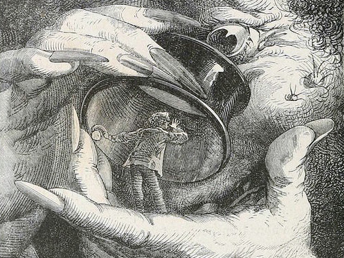 He was frightened by a clattering havoc of glass crashing as twin mirrors fell and a set of bound books tumbled into a pile. Mr. Beder jumped and hurried to the source of the disturbance, but saw nothing of the possum except for a quick glimpse of white fur and a bald pinkish tail.